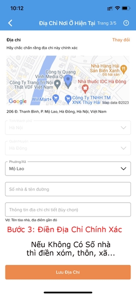 Bước 4: Nhập Chính Xác Địa Chỉ Đang Ở Hiện Tại