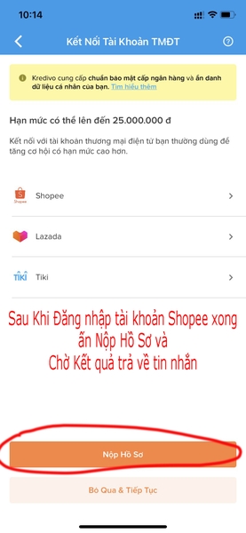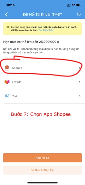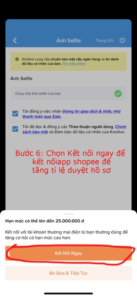 Bước 7: Chọn Kết Nối Ngay Để App Kết nối với tài khoản shopee để tăng tỉ lệ duyệt hồ sơ
