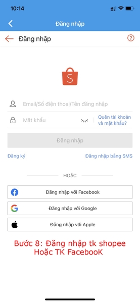 Bước 8:Chọn App Shopee Và Đăng Nhập Vào TK shopee