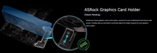 - Đế giữ VGA chống cong vênh được tích hợp trực tiếp vào main dưới dạng phụ kiện có thể tháo rời (Độc quyền của Asrock)