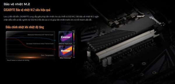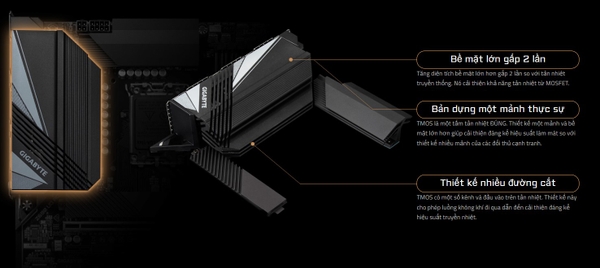 - Heatsink trang bị khắp các vị trí quan trọng, nhiệt độ của bo mạch chủ Gigabyte luôn ở top đầu trong phân khúc.