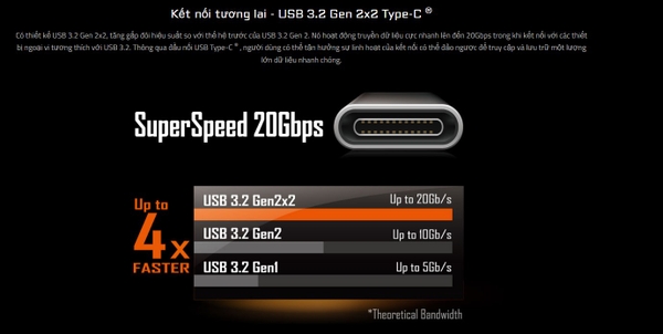 - Kết nối USB 2.2 Gen 2x2 Type-C