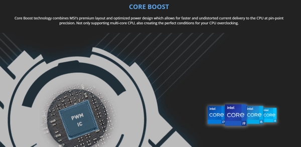 - Core Boost: Hỗ trợ giữ xung nhịp ổn định cho CPU bởi hệ thống cấp nguồn chất lượng trên bo mạch chủ MSI
